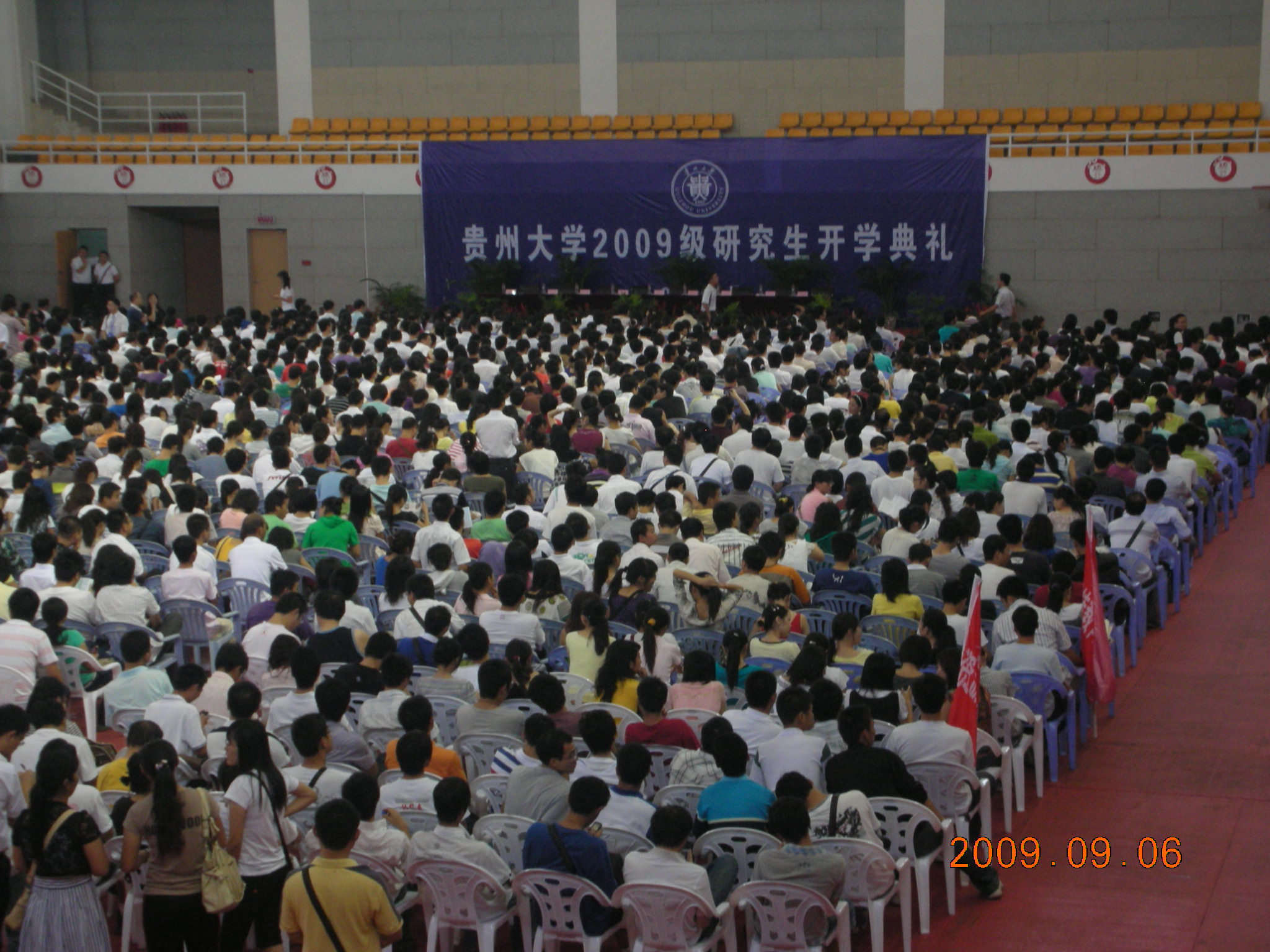自9月5日起,学期集中班、月集中班和周末班相继开课,9月6日早上部分学员代表还参加了在贵州大学花溪北校区体育馆举行的“贵州大学2009研究生开学典礼”。