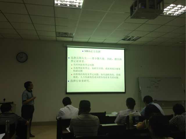 2013年6月20日晚,应MBA1102班学员邀请,中心主任李烨教授在信息楼2楼MBA204教室为2011级MBA学员做了关于“MBA学位论文选题、开题报告撰写和论文写作”的专题讲座,中心分管学位的老师以及MBA1102班全体学员参与了讲座。