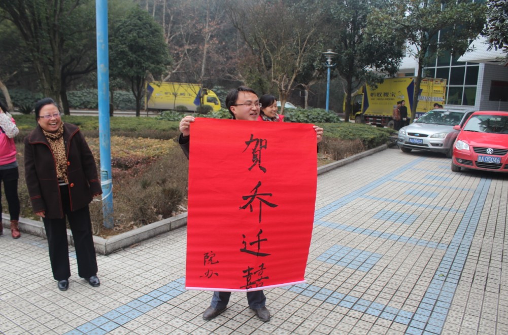 院办公室亲笔贺上:贺乔迁喜。