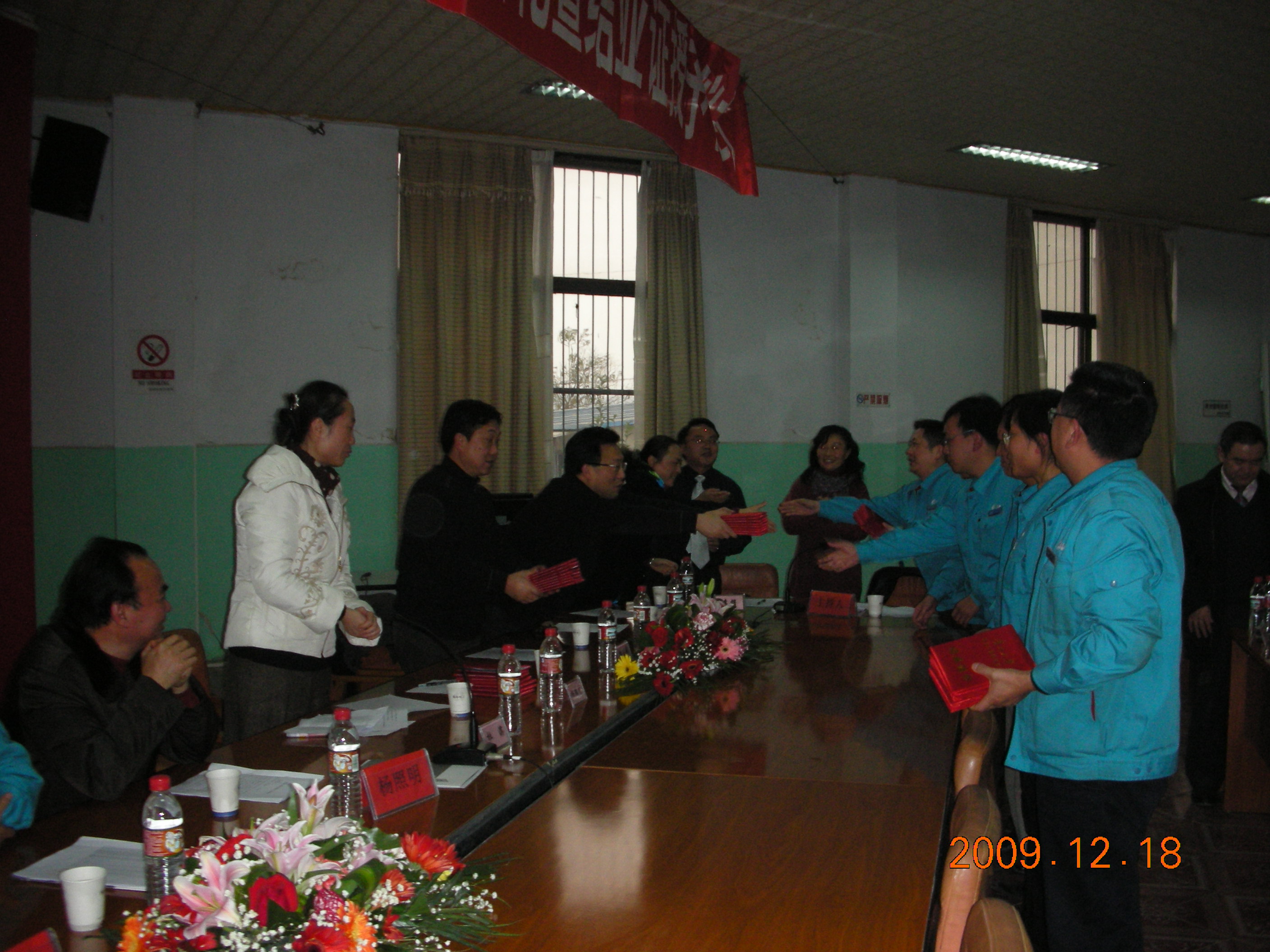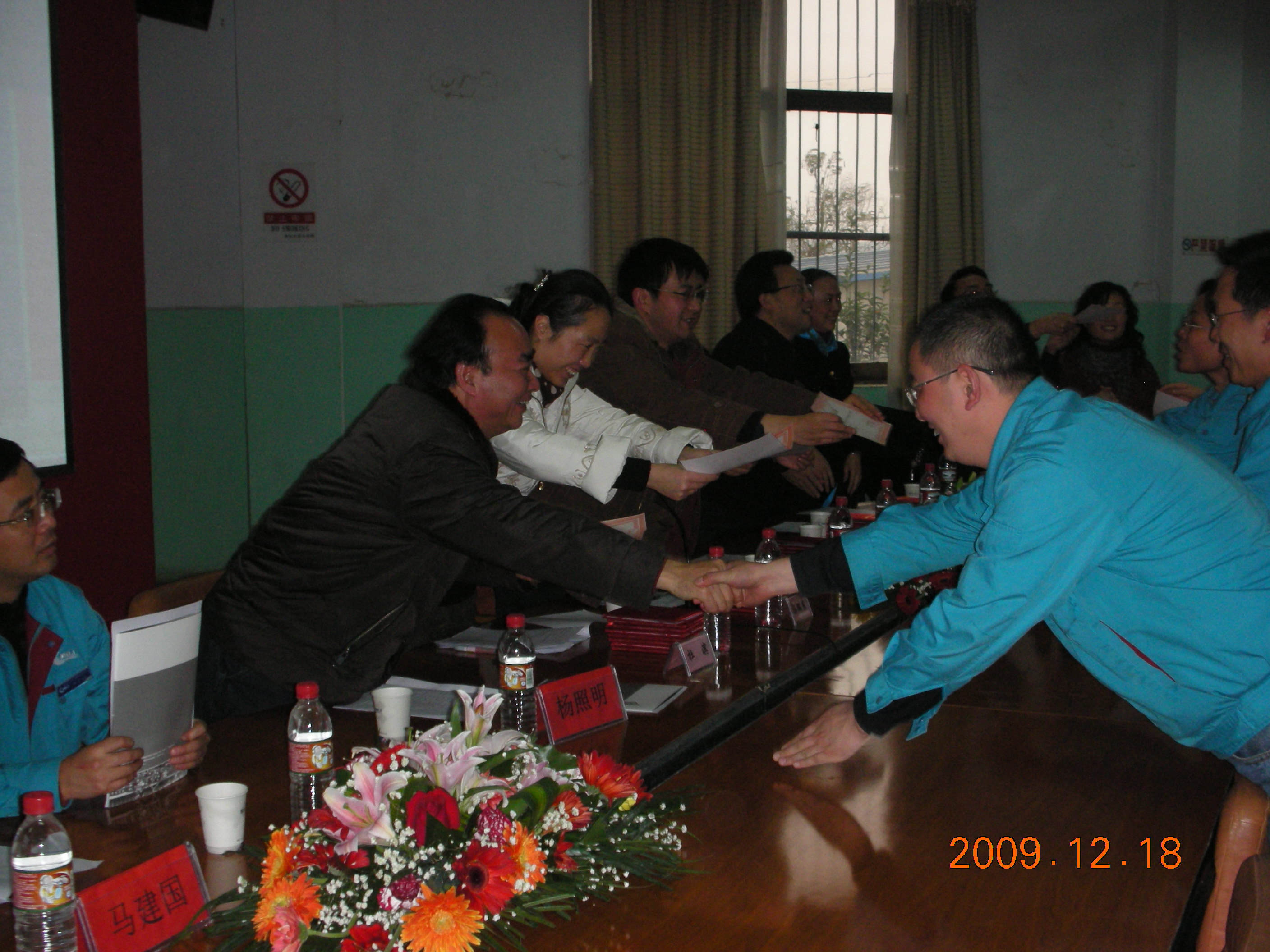 2009年12月18日下午四点,MBA0807课程进修班结业典礼在际华三五三七制鞋有限责任公司二楼会议室隆重举行。0807班全体同学系际华三五三七制鞋有限责任公司中高层骨干管理人员,他们在万象城网页版历时一年半的MBA课程进修学习已全部结束,全班三十九位同学以优异成绩全部顺利结业。贵州大学研究生院副院长杨瑞东教授、管理学院院长杜滨教授、党委书记陶玉顺教授、副院长林岚涛教授、院长助理兼EMBA教育中心主任叶晓梅副教授、MBA中心主任李烨教授、MBA中心副主任刘梅副教授、际华三五三七制鞋有限责任公司董事长杨照明出席了结业典礼,0807班部分任课老师、班主任及MBA中心工作人员参加了典礼。结业典礼由MBA中心副主任刘梅主持。