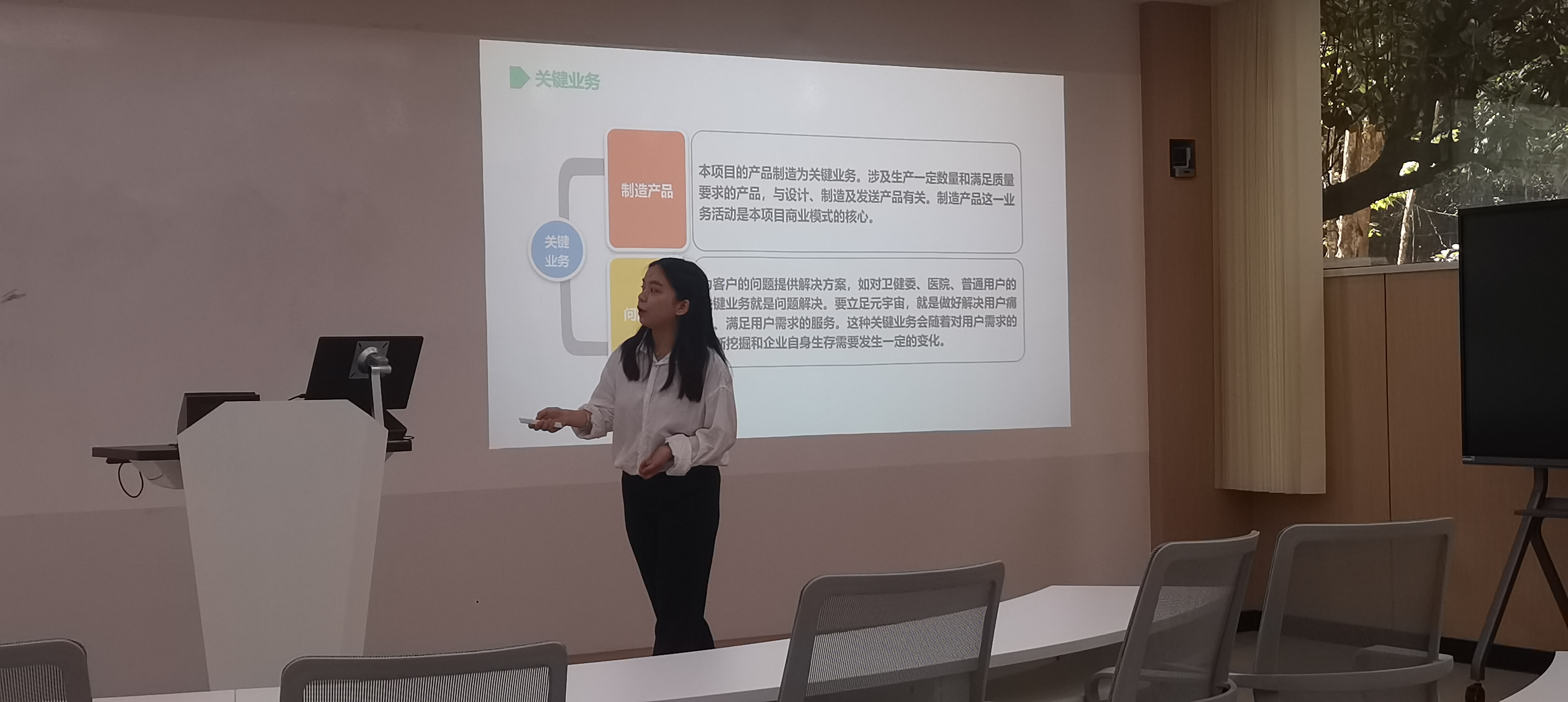 各参赛小组以PPT形式向评委展现商业计划方案,每组陈述时间8分钟,接着进入评委提问和学员答辩环节。