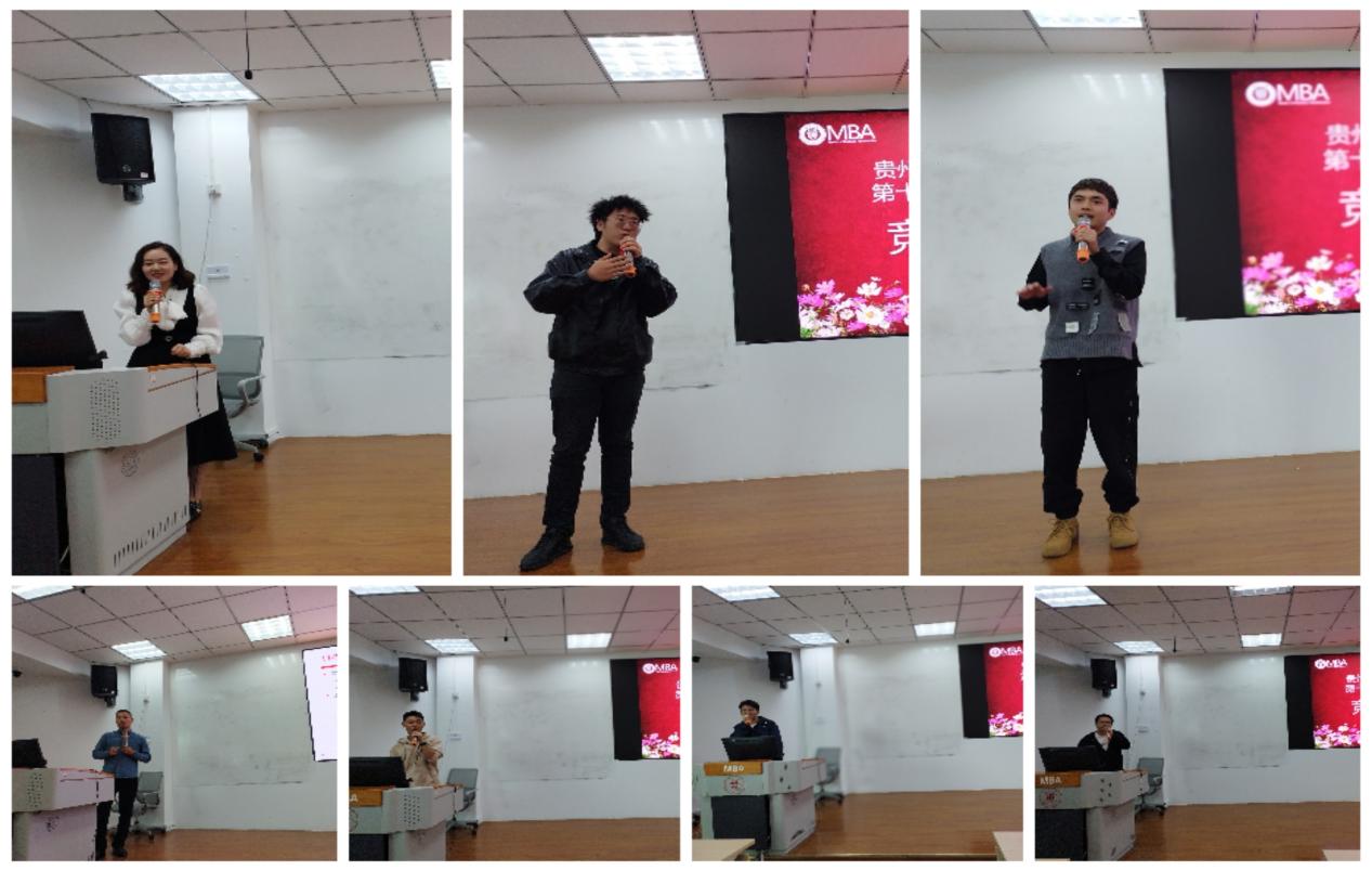 之后,主持人宣读贵州大学第十届MBA联合会换届大会通知及候选人名单,候选人按照抽签顺序依次发表5-10分钟竞选演讲。