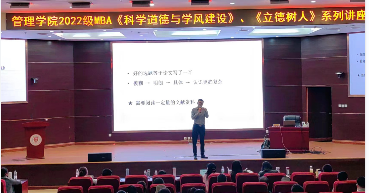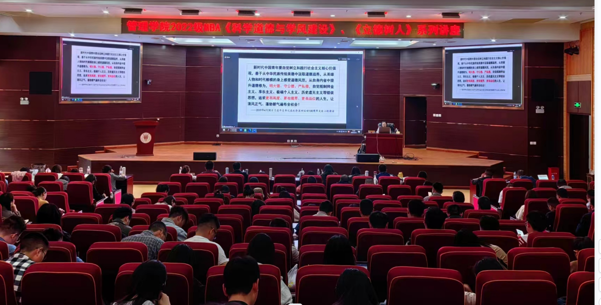 260余名学生全程认真聆听每场讲座并认真做笔记,现场气氛热烈,效果良好,为学生接下来的论文撰写指明了方向,提出了要求。此次MBA2022级《科学道德与学风建设》、《立德树人》培养环节圆满结束。
