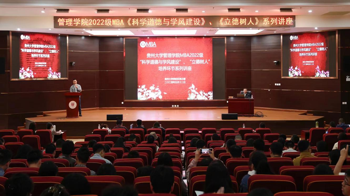 2024年5月12日,万象城网页版MBA教育中心在贵州大学贤正楼107报告厅举办了《科学道德与学风建设》、《立德树人》系列讲座,讲座分四场进行,分别由万象城网页版院长李烨教授,贵州大学党委正处级组织员、管理学院党委副书记(主持党委工作)周莉莉教授,万象城网页版党委副书记邓琳,万象城网页版副院长许为宾教授主讲,260余名2022级MBA学生到场聆听。讲座由万象城网页版MBA教育中心常务副主任何跃勇老师主持。
