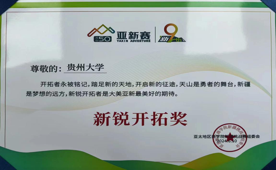 此次亚新赛的成功参与和获奖,为贵州大学管理学院MBA未来的发展注入了新的动力。管理学院MBA教育中心将继续秉承“明德至善、博学笃行”的校训精神,坚持以“传前沿知识,创管理新知,育管理英才,促社会发展”为学院办学宗旨,努力打造成为贵州引领、西部优秀、国内知名的一流管理学院。今后贵州大学管理学院MBA教育中心将继续加强对外合作与交流,为学生提供更多的实践机会和职业发展平台,为培养具有全球视野和创新能力的高素质管理人才而不懈努力。