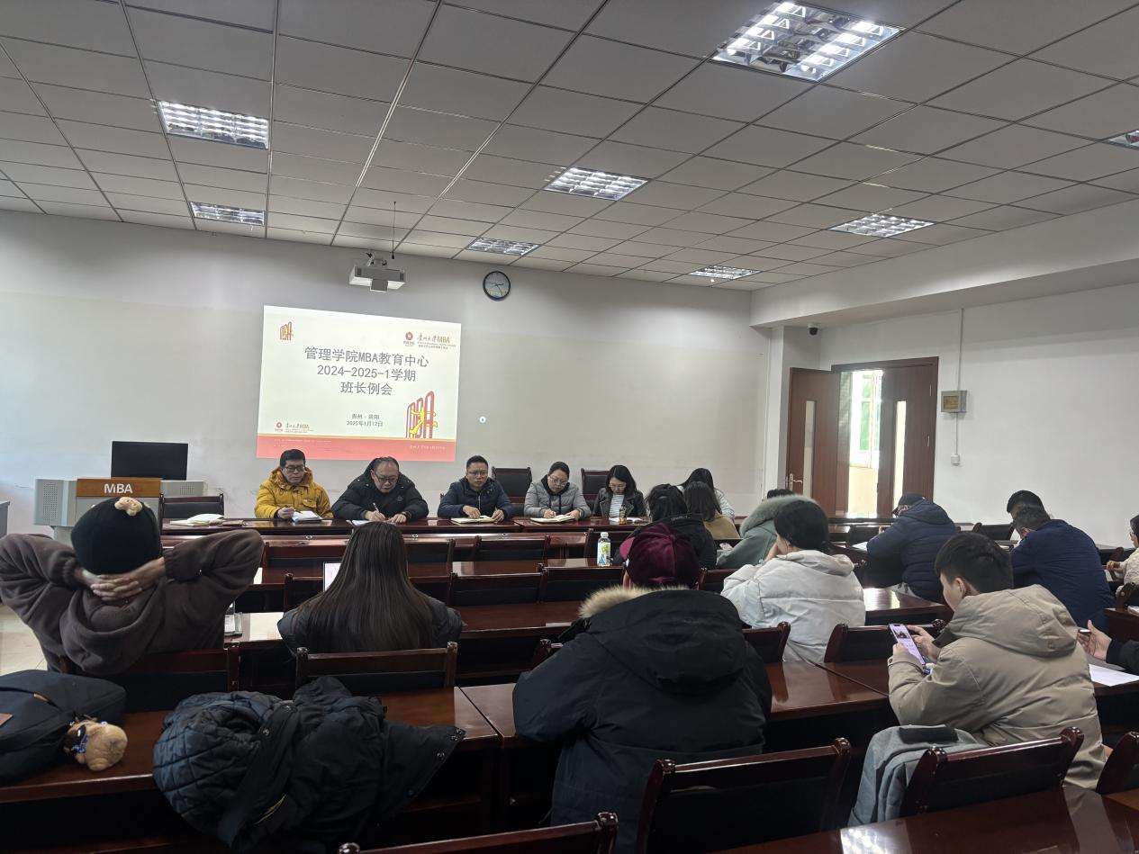2025年1月12日,万象城网页版MBA教育中心在203教室举行了2024-2025第一学期班长例会,会议由MBA教育中心常务副主任何跃勇主持,中心办公室主任芮丽华、中心江滔、凌聪、缪春华、欧璐、李巧玲以及2022级、2023级、2024级各班班长、副班长、学习委员等共计30余人参加。